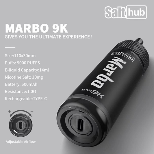 Marbo Bar 9K ― スタイルと実用性を兼ね備えた次世代の使い切り電子タバコ Marbo Bar 9Kは、利便性、パフォーマンス、そして豊かなフレーバー体験を1つに融合させた、革新的なディスポーザブル・ベイプです。最大9,000回の吸引が可能な大容量設計により、リキッドの補充や頻繁な充電の煩わしさから解放され、外出先でもストレスなく使用できます。 内蔵の600mAhバッテリーは長時間の使用にも対応し、14mlのリキッドには3%(30mg/ml)のニコチンを含有。滑らかでありながら満足感のある吸い心地を提供します。 Marbo Bar 9Kを選ぶ理由...