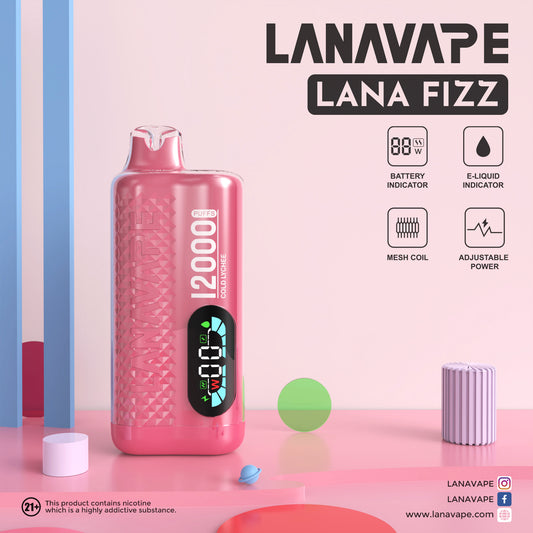 Lana Fizz 12Kは、利便性、パフォーマンス、そしてフレーバーを究極に融合させた革新的なディスポーザブル・ベイプです。長時間にわたる使用が可能で、最大12,000回のパフを楽しむことができます。充電やリフィルの煩わしさから解放され、外出先でもそのまま手軽に使用できる設計が特徴です。特に、忙しい日常にぴったりな、この製品は、持ち運びに便利で、どこでも快適な吸引体験を提供します。 長時間使用可能: Lana Fizz 12Kは、20mlの大容量リキッドと、3%のニコチン濃度を備えており、スムーズで満足感のある吸い心地を実現します。リキッドの容量は非常に大きいため、頻繁にリフィルを行う必要はなく、約12,000回のパフを楽しむことができ、長時間にわたる使用が可能です。喉に優しく、気軽に使用できるニコチン濃度は、ベイプ初心者にもおすすめです。 メッシュコイル技術: Lana Fizz 12Kは、Lana独自のメッシュコイル技術を採用しています。この技術により、均一で滑らかなフレーバーが提供され、焦げた味や不快な味を排除します。各パフごとに、精緻に設計されたフレーバーが感じられ、フレーバーが非常にクリアで新鮮です。パフの度に、その品質の高さが実感でき、味わい深い体験をお楽しみいただけます。 パワー設定の調整機能:...